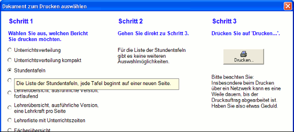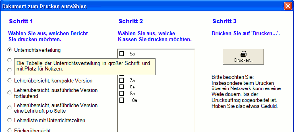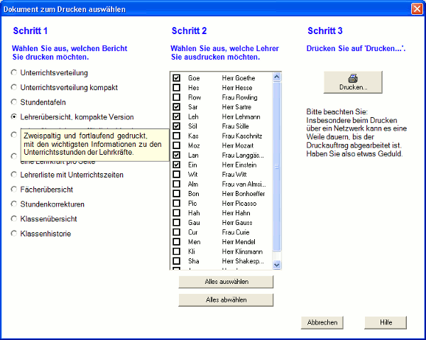 für welche Lehrer Sie einen Bericht ausdrucken möchten. Mit
